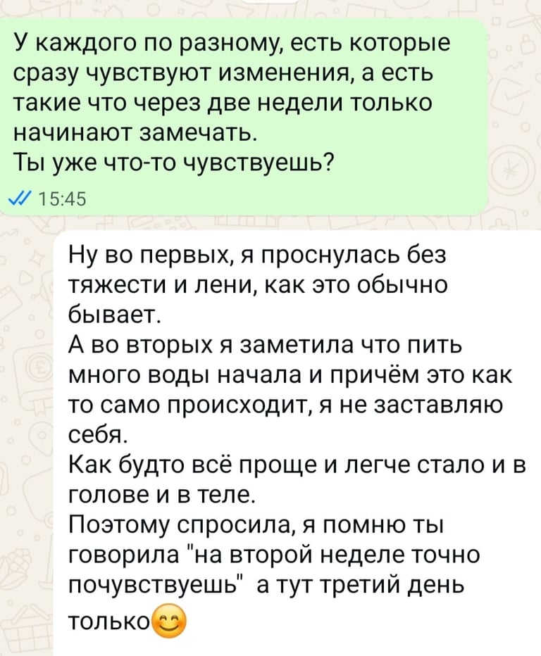 אצל כל אחד זה שונה. יש כאלה שמרגישים שינוי מיד ויש כאלה שרק אחרי שבועיים מתחלים לשים לב.